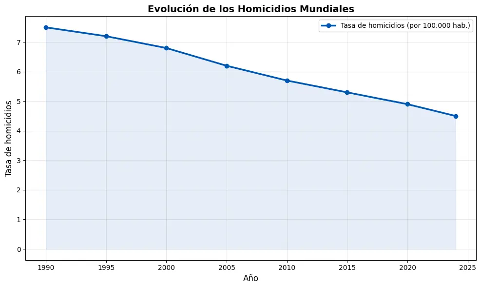 También vivimos en un mundo cada vez más seguro.Las tasas globales de homicidios han caído casi a la mitad en las últimas décadas. Cuando las personas se sienten seguras, consumen más, invierten más y piensan más a largo plazo.