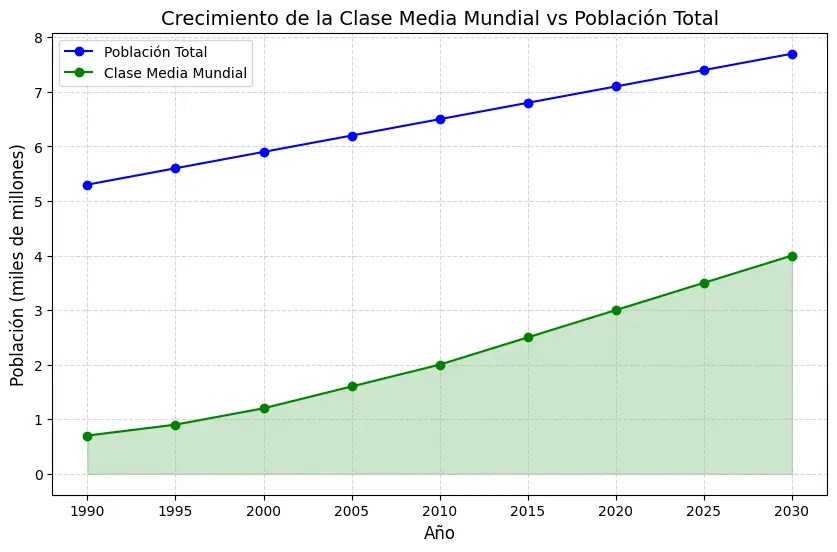 Uno de los mayores motores de este crecimiento es el ascenso de la clase media mundial.Cada año, millones de personas pasan de cubrir solo lo básico a poder ahorrar, viajar o invertir. Y eso impulsa la demanda de productos, servicios, vivienda, energía y tecnología en todo el planeta.