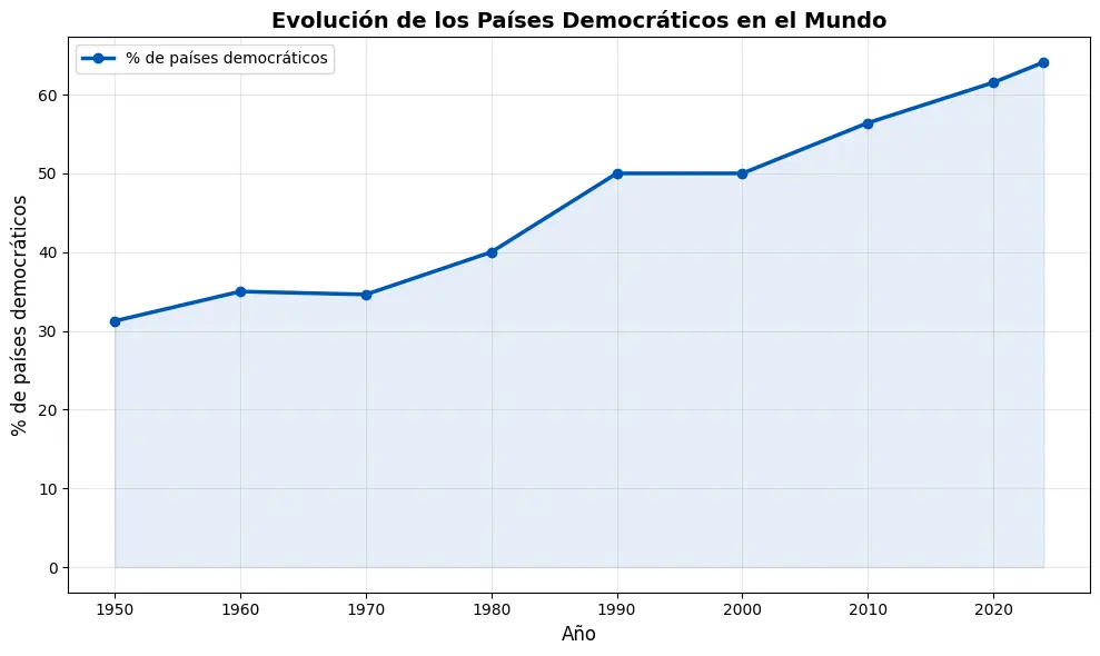 Además, cada vez más países son democráticos o cuentan con instituciones más estables.Esto genera entornos con mayor seguridad jurídica, mejor gestión económica y más apertura al comercio internacional. La estabilidad política es clave para que las empresas crezcan y las inversiones prosperen.